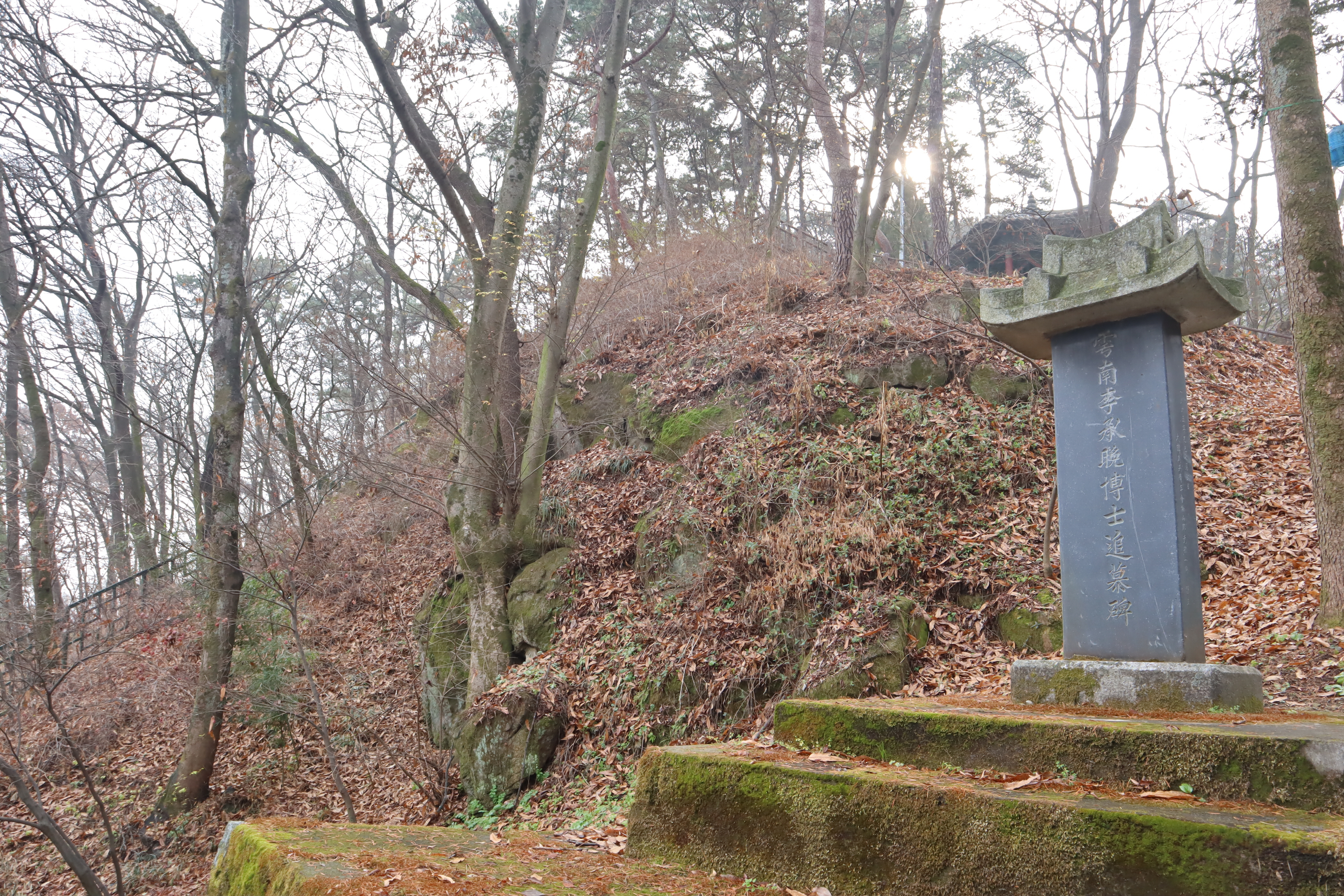 일주문을 지나 사천왕문을 지나서 올라가다 보면 이승만 박사 추모비도 있습니다. 이승만 대통령이 논산 포로수용소의 포로들을 석방해 준 것을 기리고자 포로들이 세운 곳이라고 하는데 절 내에 있는 것이 특이하기는 합니다.