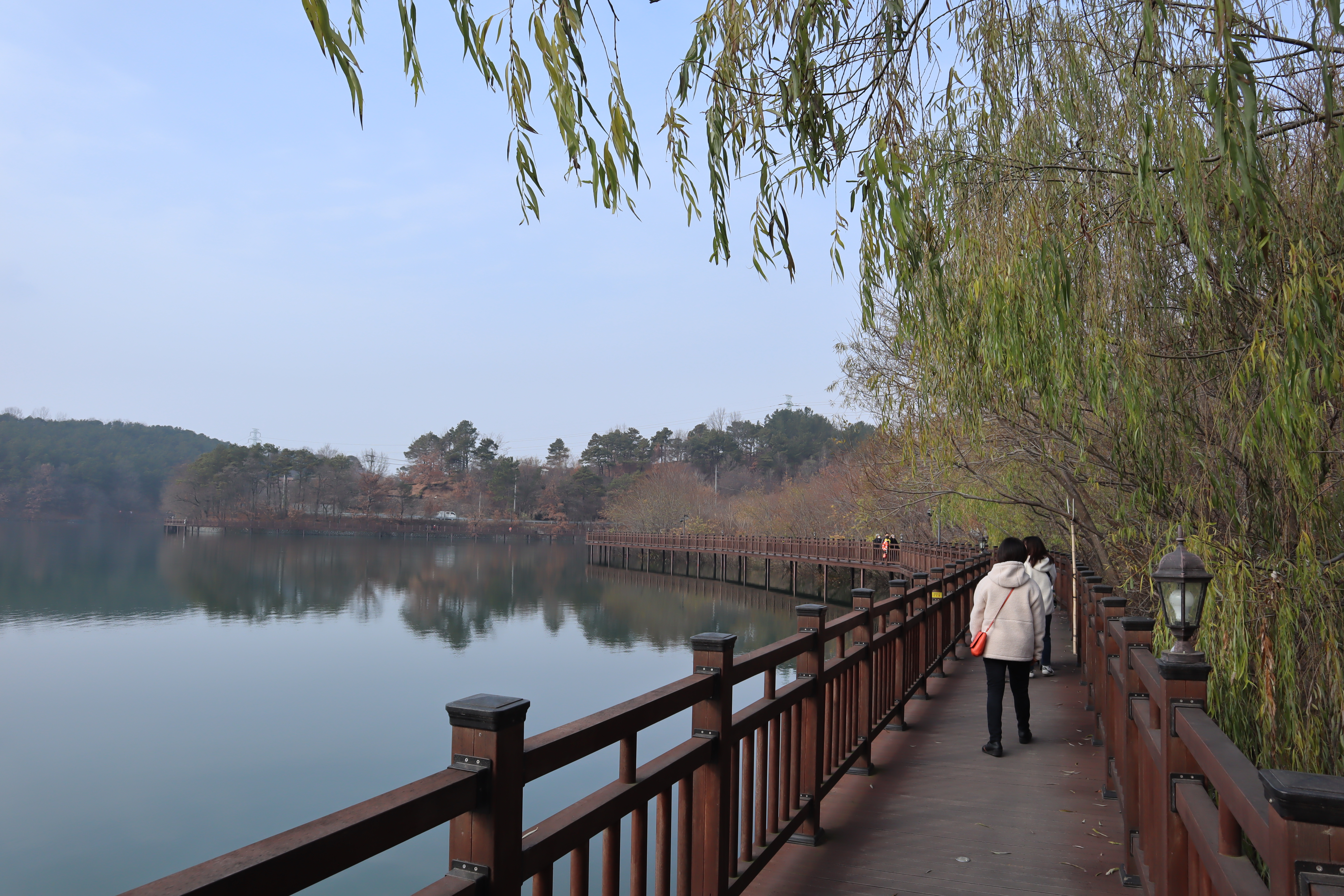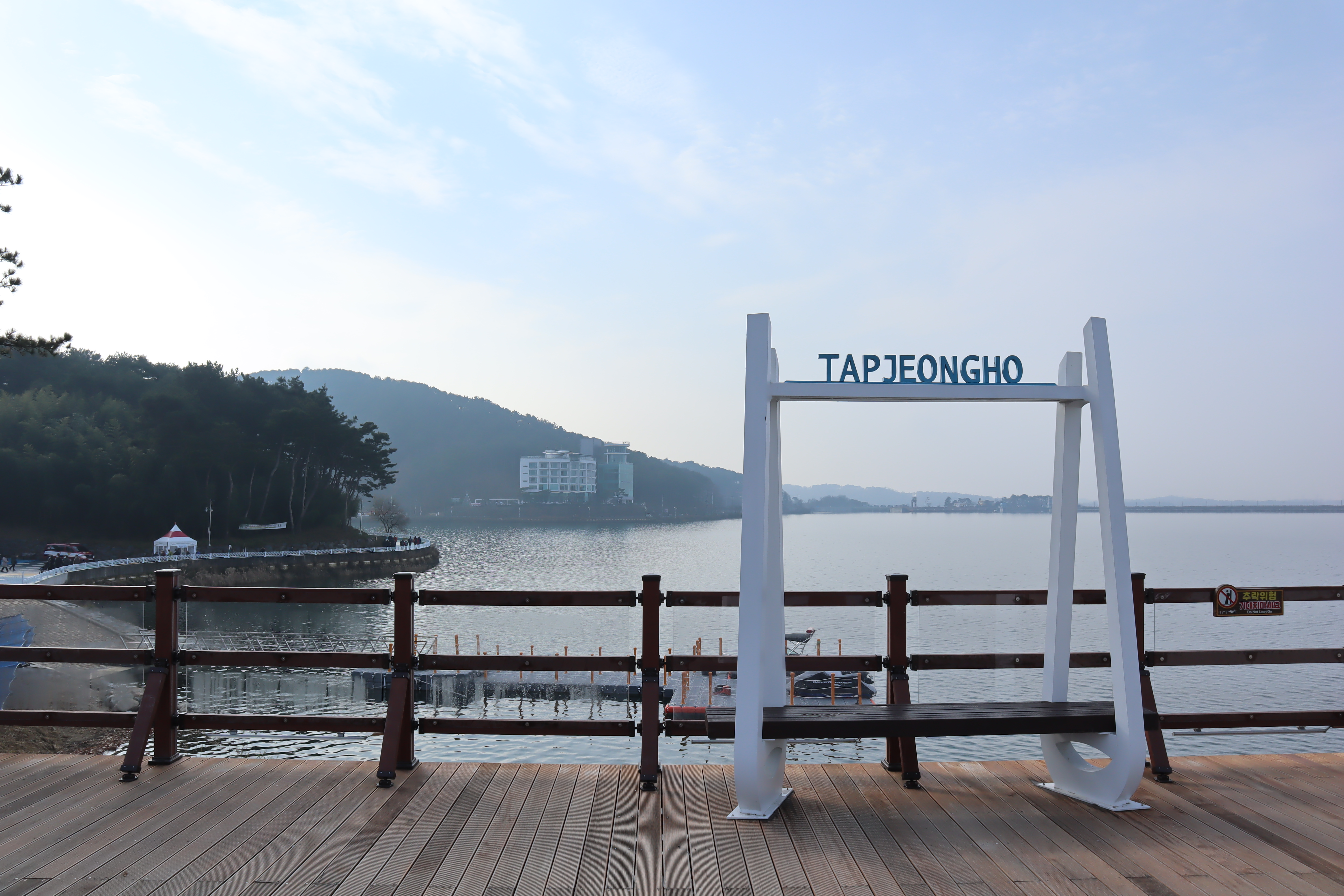 주변에 있는 산책로가 나무 데크로 잘 만들어져 있어서 산책을 하면서 구경을 하기에도 좋습니다. 탑정호출렁다리가 개통되기 전에는 눈이 온 날 이곳을 찾은 적이 있는데 걸으면 저수지를 구경하는 맛도 있더라구요.