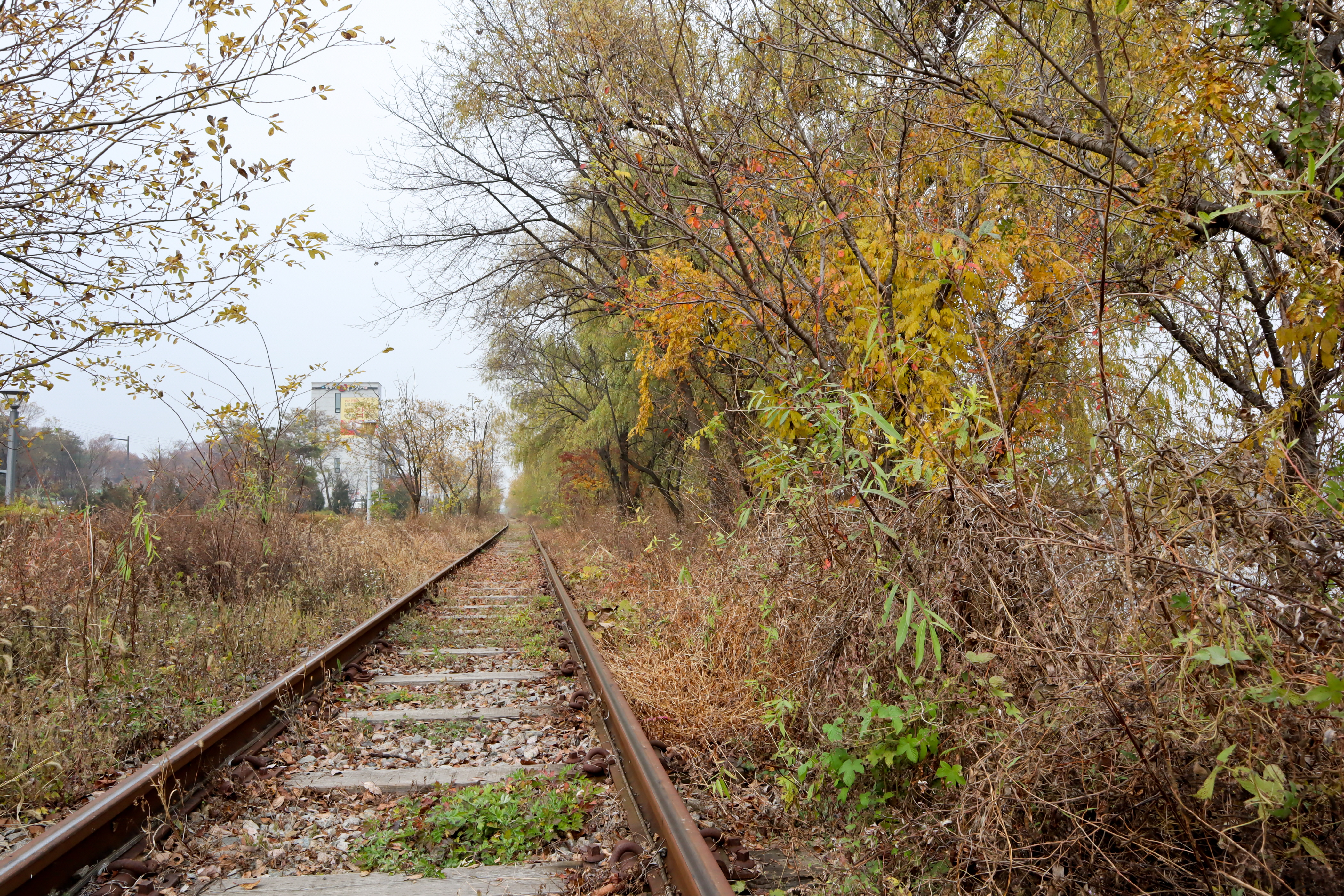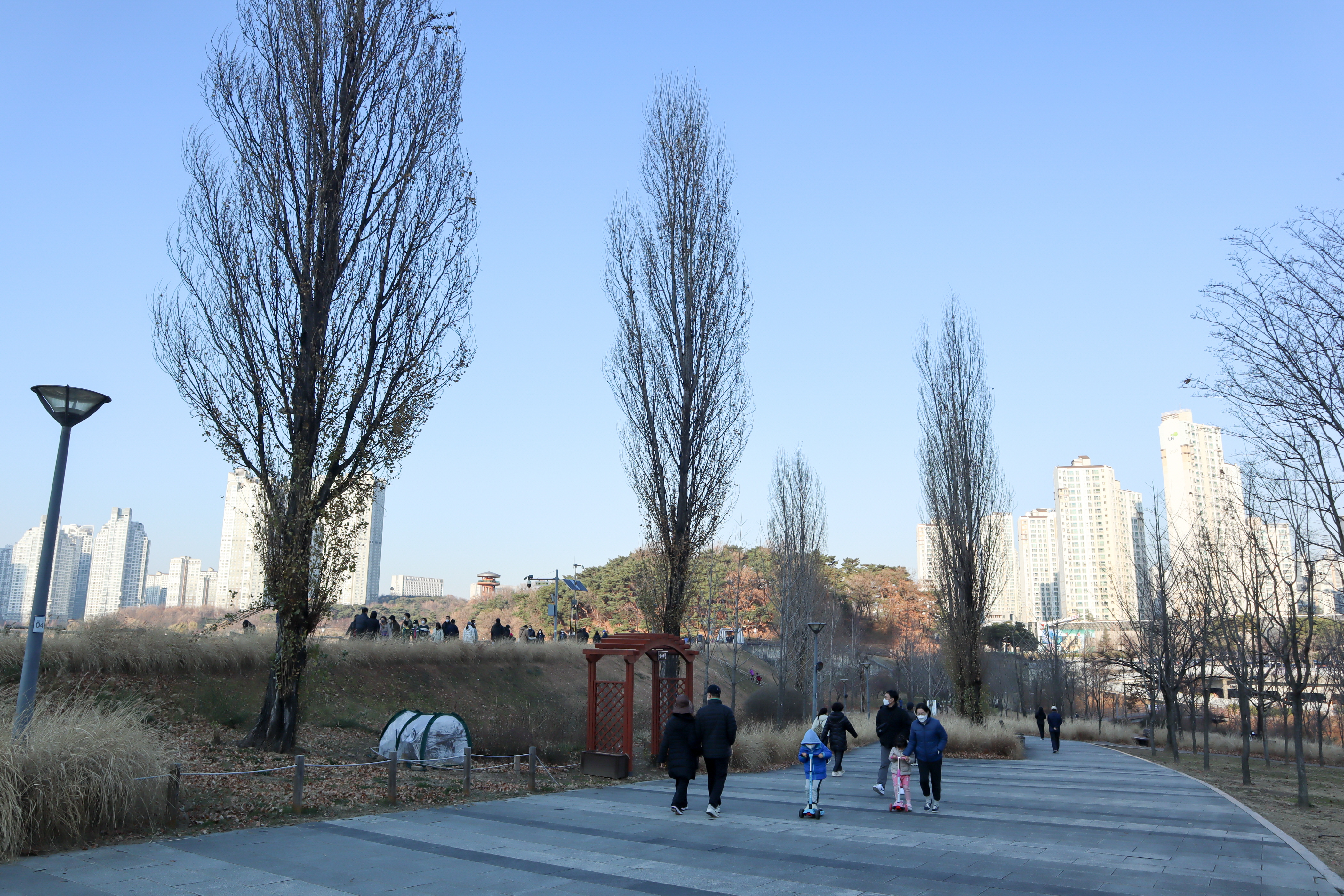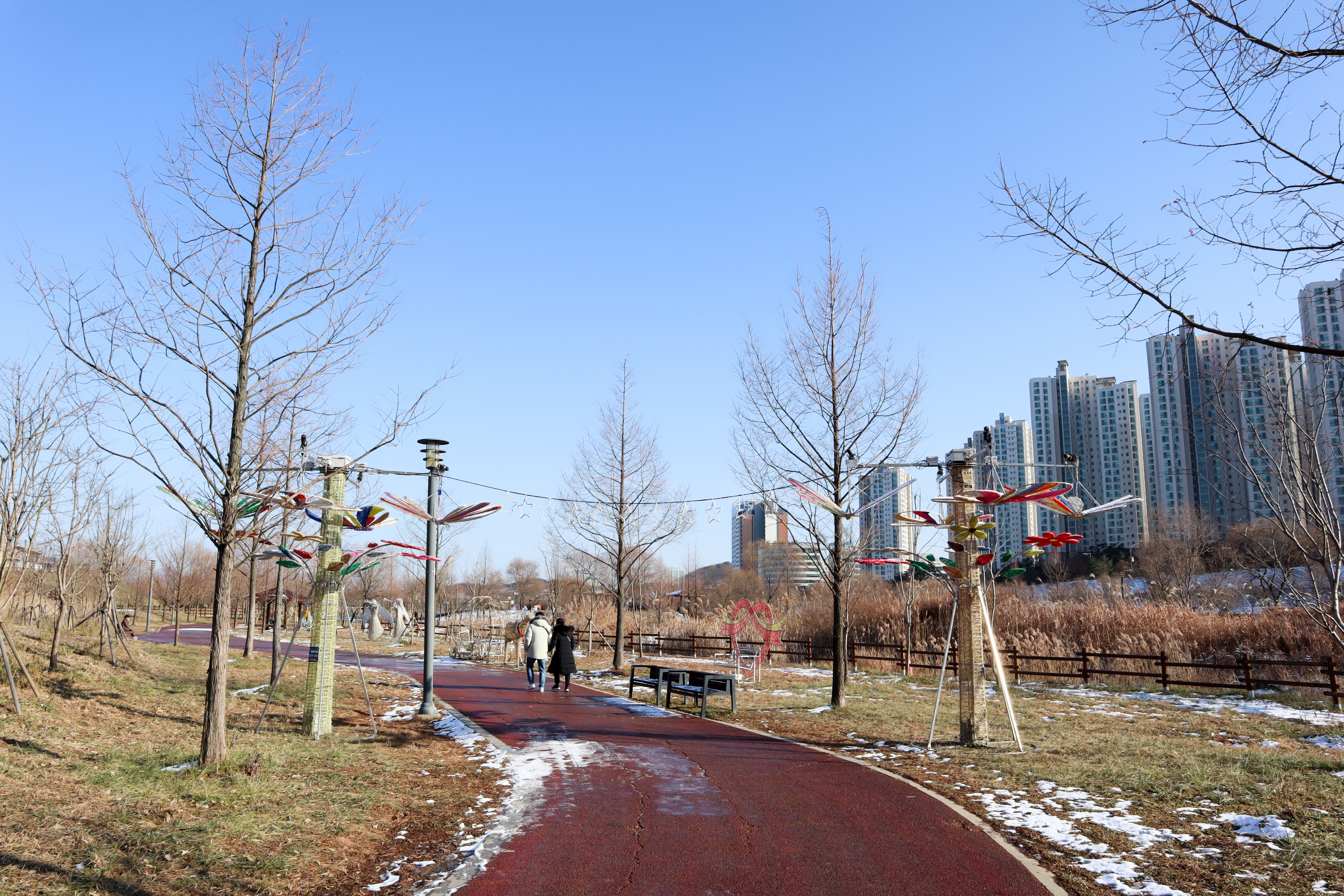 산책로에 보이는 풀과 나무들의 갈색 세상은 겨울을 상징하는 것이니 마음을 비우고 여유로운 산책을 하시면 좋은 것 같습니다.
