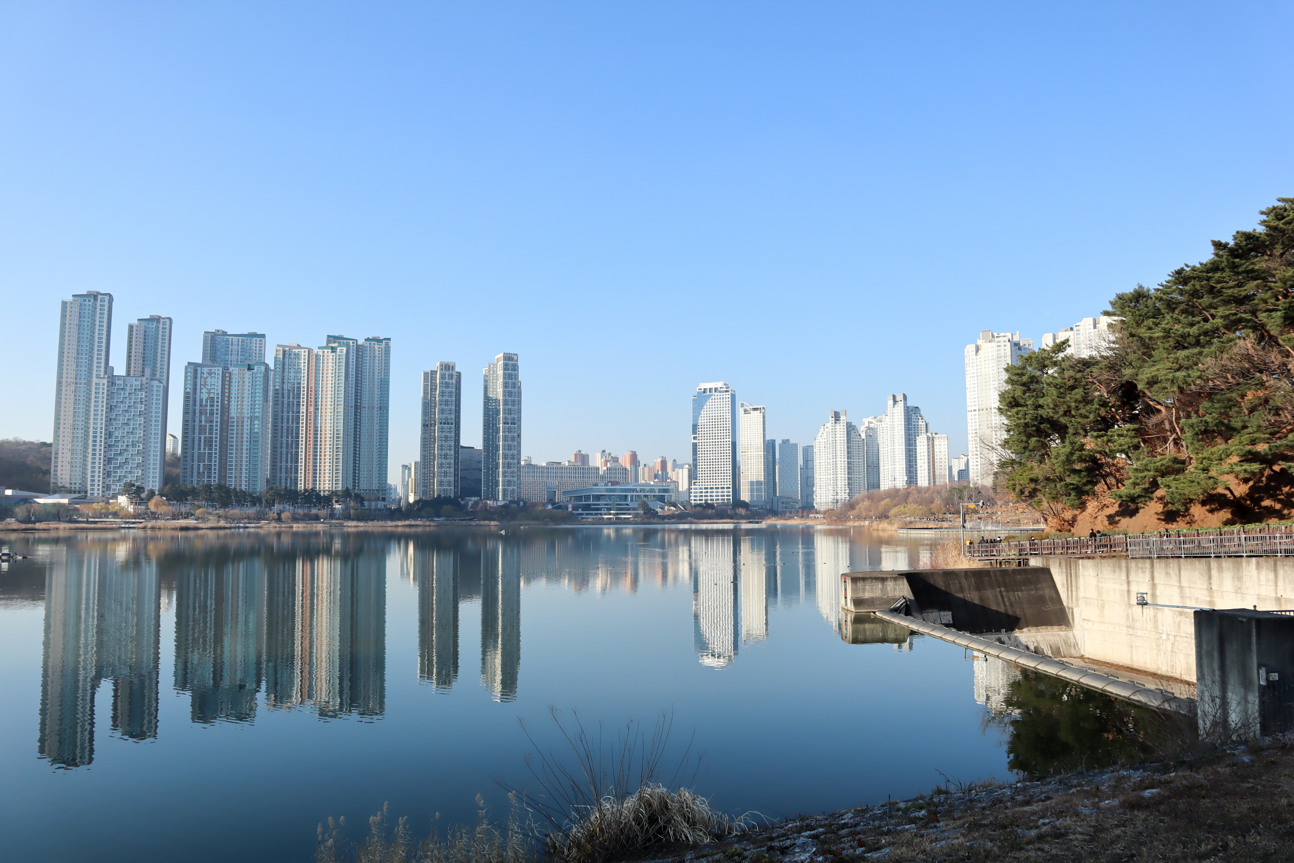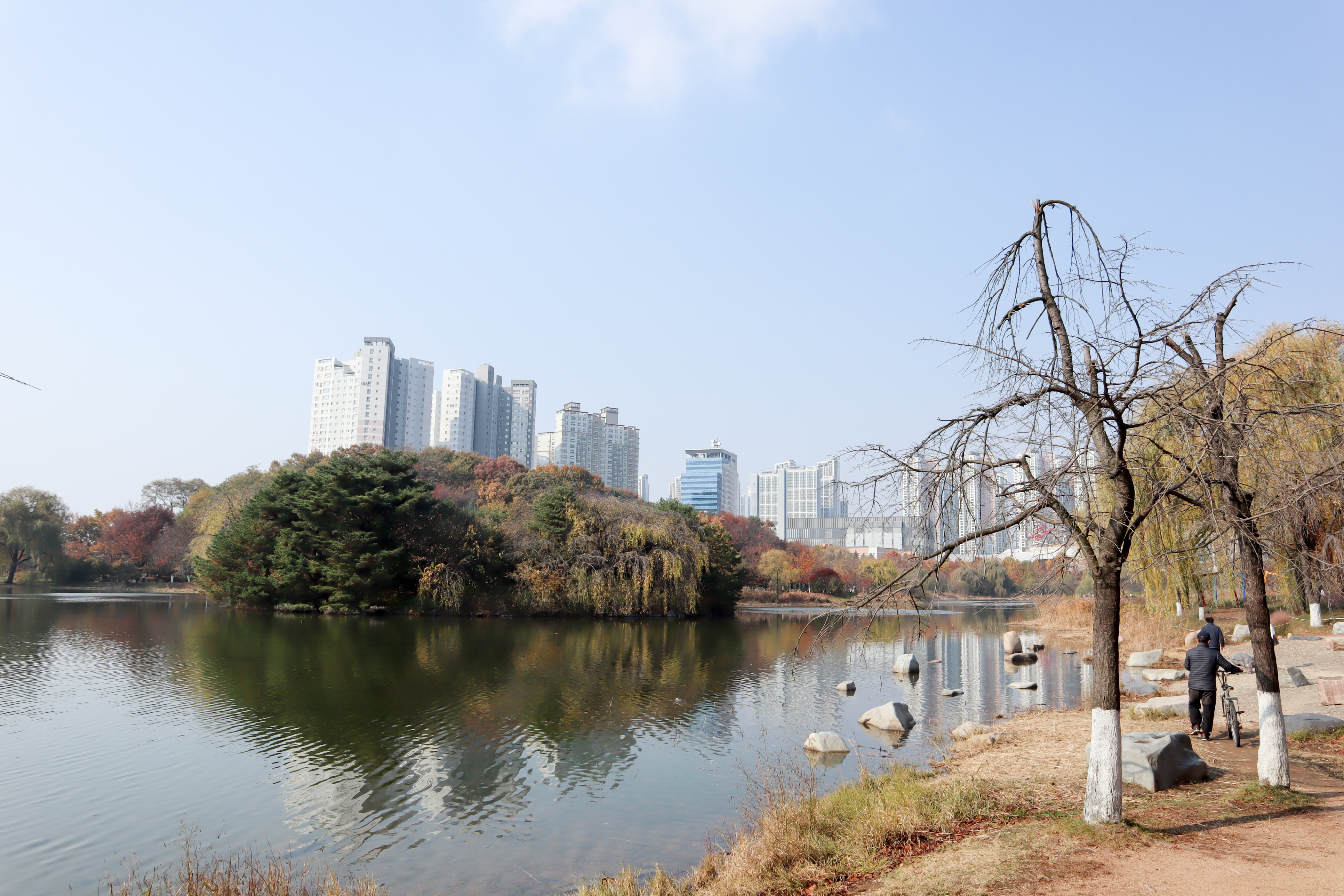 주변이 대부분 아파트가 보이는 곳이기는 하지만 풍경이 나름 멋진 곳이라 어느 경로를 이용하셔도 좋습니다. 저는 개인적으로 원대호수를 도는 풍경이 더 멋지다고 생각을 해서 신대호수보다는 자주 도는 경로이기는 합니다.
