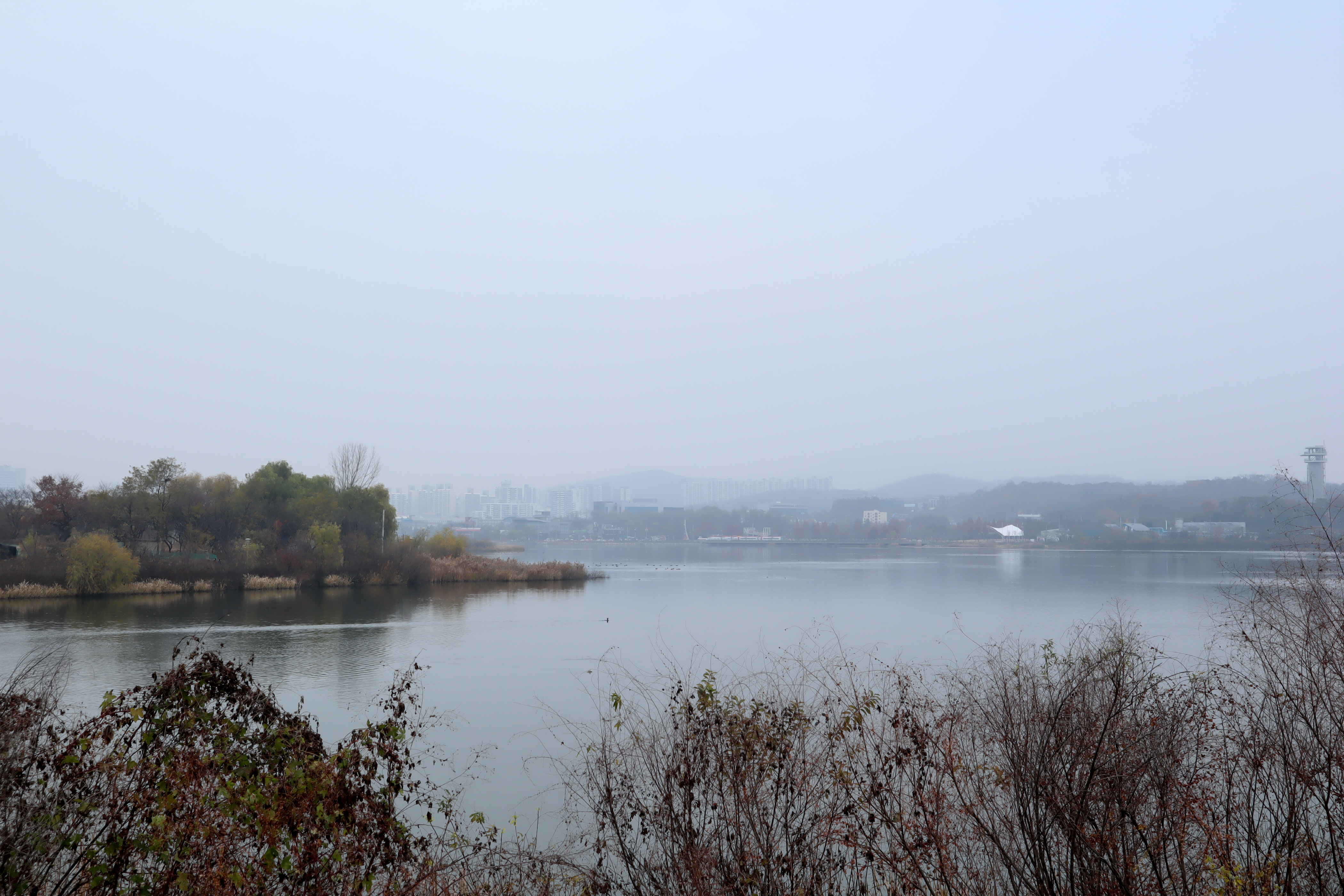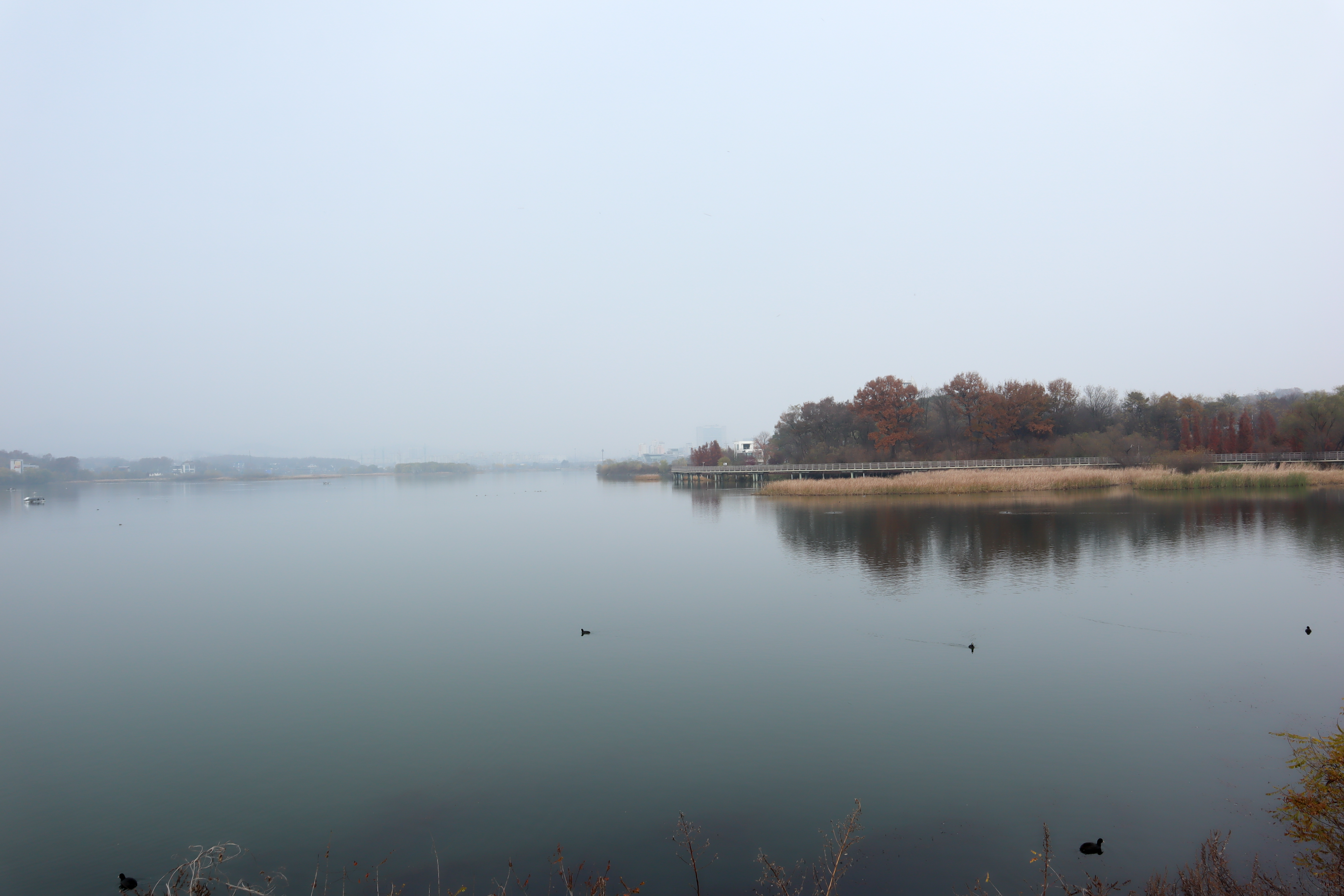 오늘 이곳을 찾은 것은 이곳을 항상 봄이나 여름에만 찾아서 구경을 하다 보니 호수의 반대편에는 가지를 못했더라구요. 그래서 이번에는 주차를 공영주차장 반대편에 하고 호수의 모습만 구경을 하고 왔습니다. 다만 날씨가 미세먼지가 많은 날이라 경치가 그리 좋게 보이지는 않았지요.