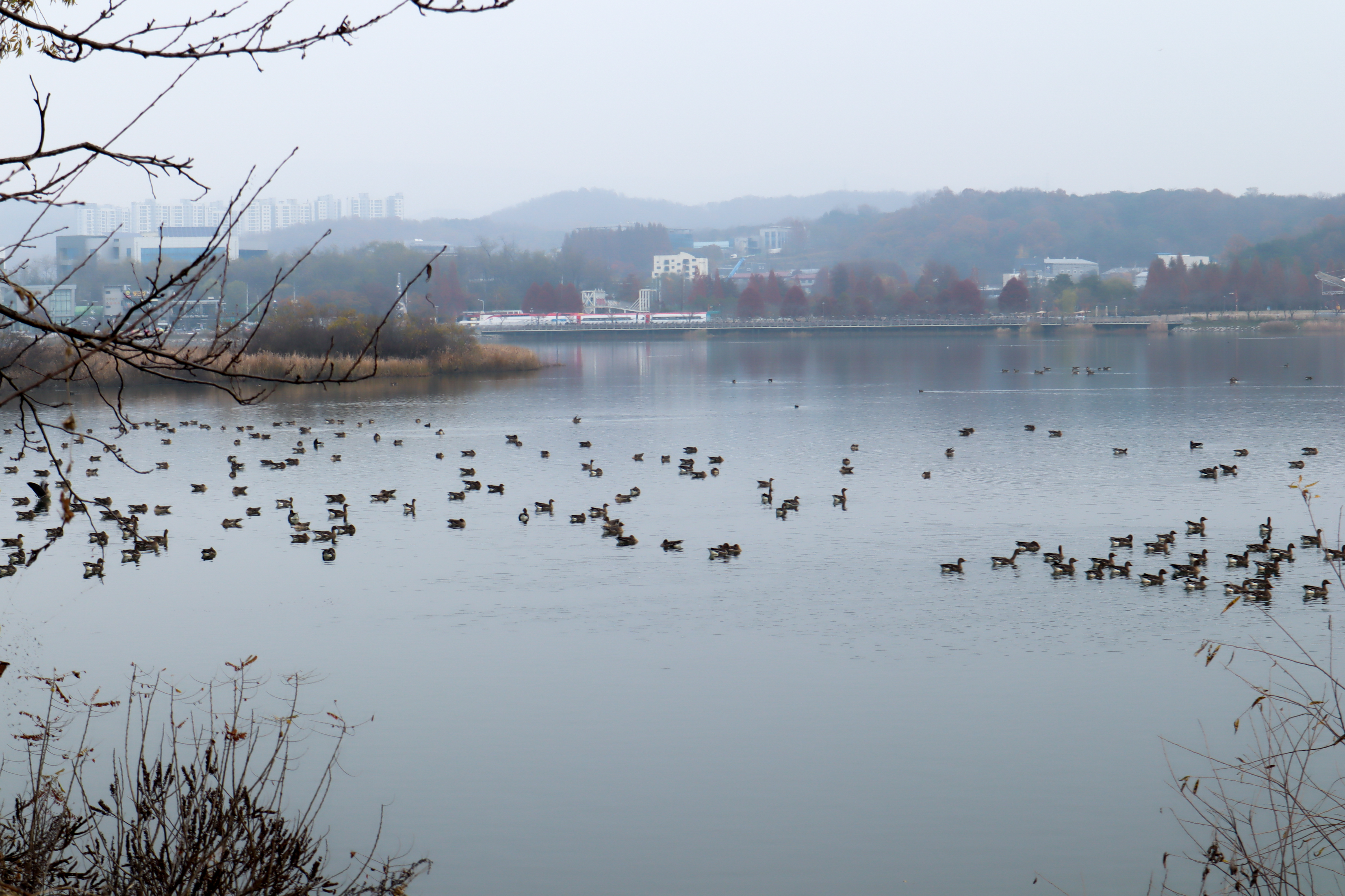 겨울 풍경을 구경하는데 이곳에는 물닭들이 엄청나게 많이 보이더라구요. 일반 호수에 이렇게 많은 새들이 보여있는 모습은 처음 보는 것 같은데 사람이 가까이 가면 시끄럽게 소리가 커지는 듯 하더라구요.