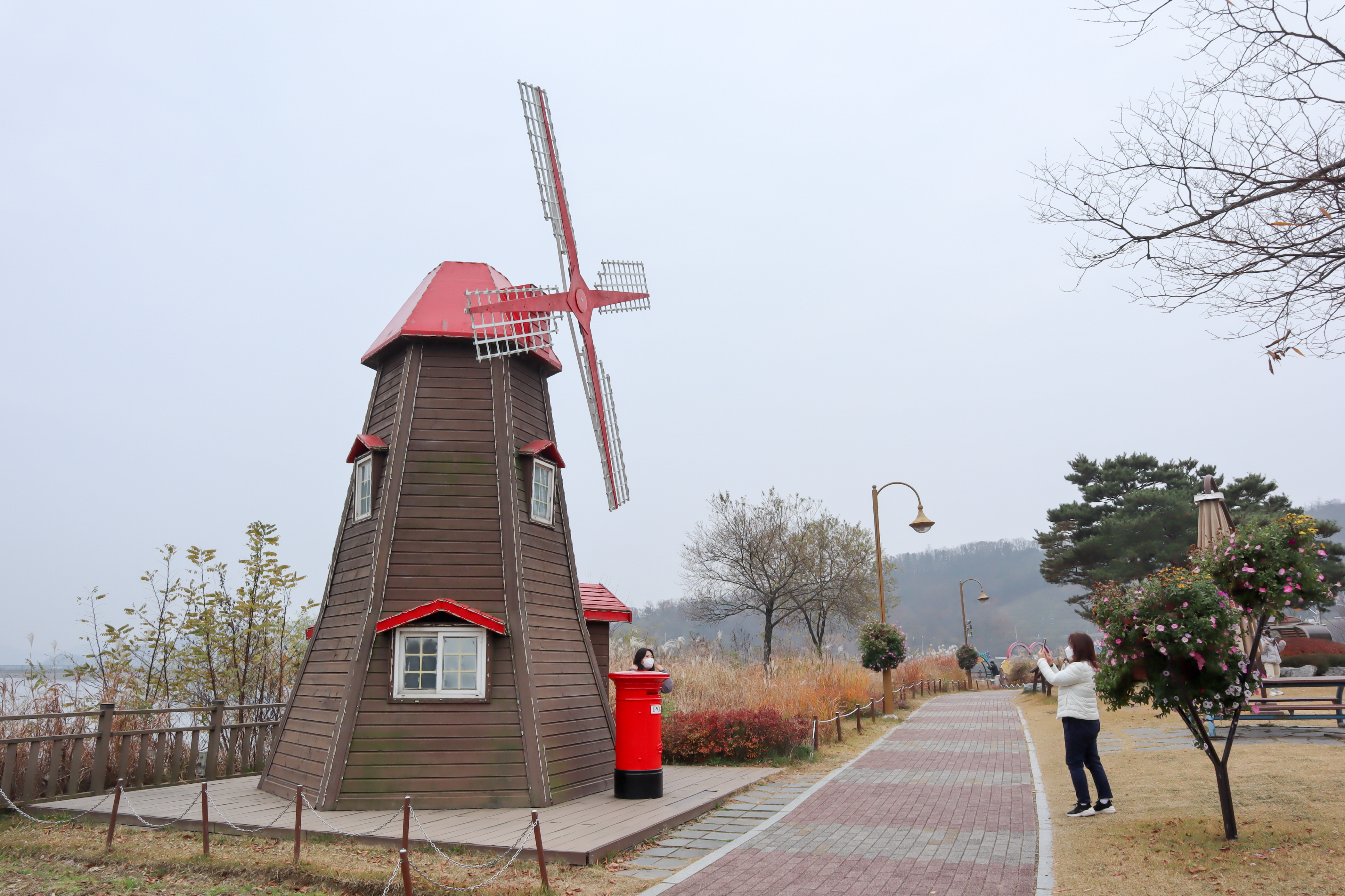 빨간풍차 근처에는 꽃들도 많이 심어져 있어서 봄에서 가을까지 다양한 꽃들을 볼 수가 있는 곳이라 연인이나 친구들끼리 이곳을 찾아서 사진을 찌는 경우도 많이 있지요.