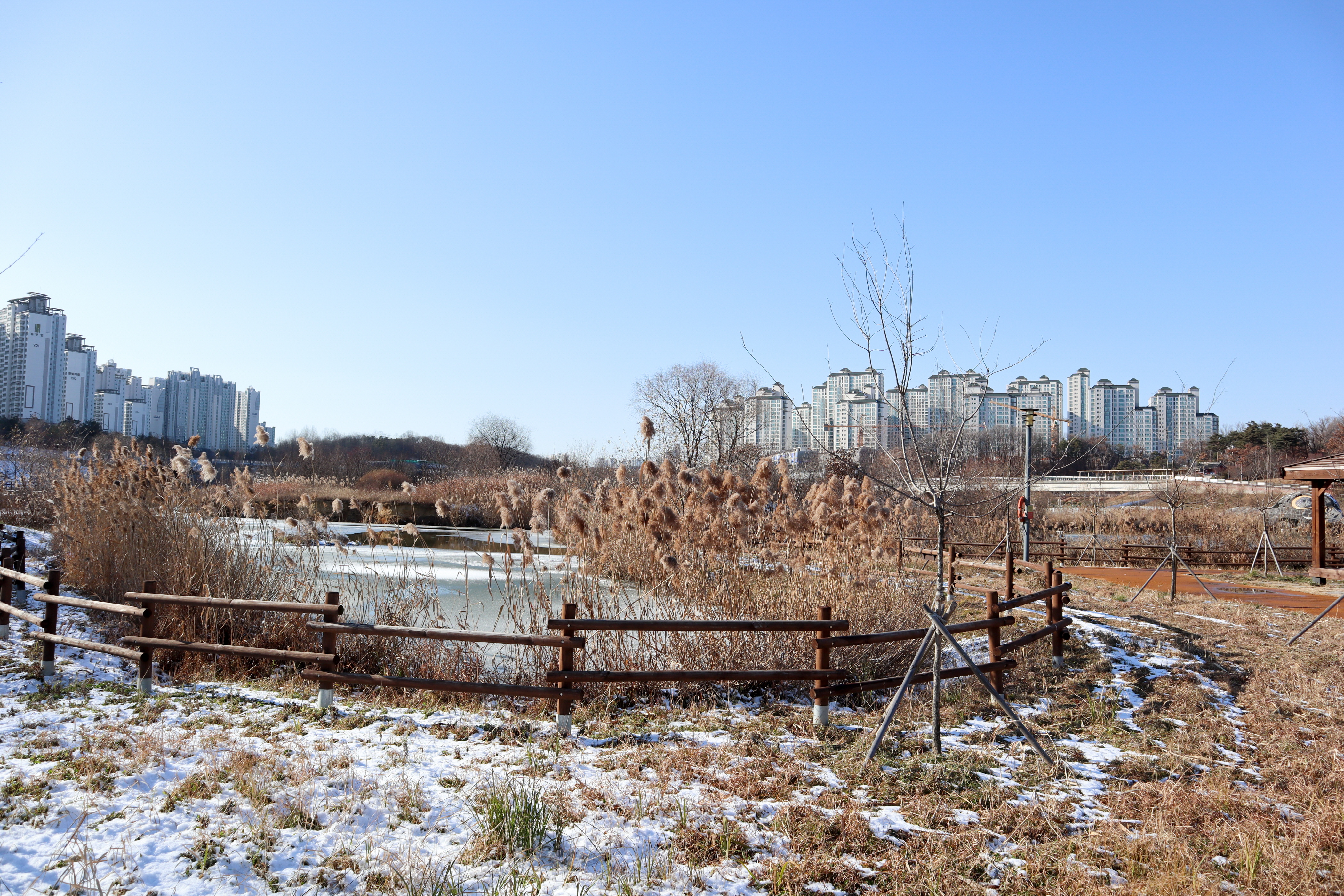 자연학습장 부근에는 습지 같은 곳이 있는데 여름에는 연꽃도 볼 수가 있는 곳이고 다양한 꽃들도 심어져 있어서 봄에 좋은 곳이기도 합니다. 지금은 겨울 모습이겠지만 갈대들이 아직은 있을 것이라 생각이 드네요.