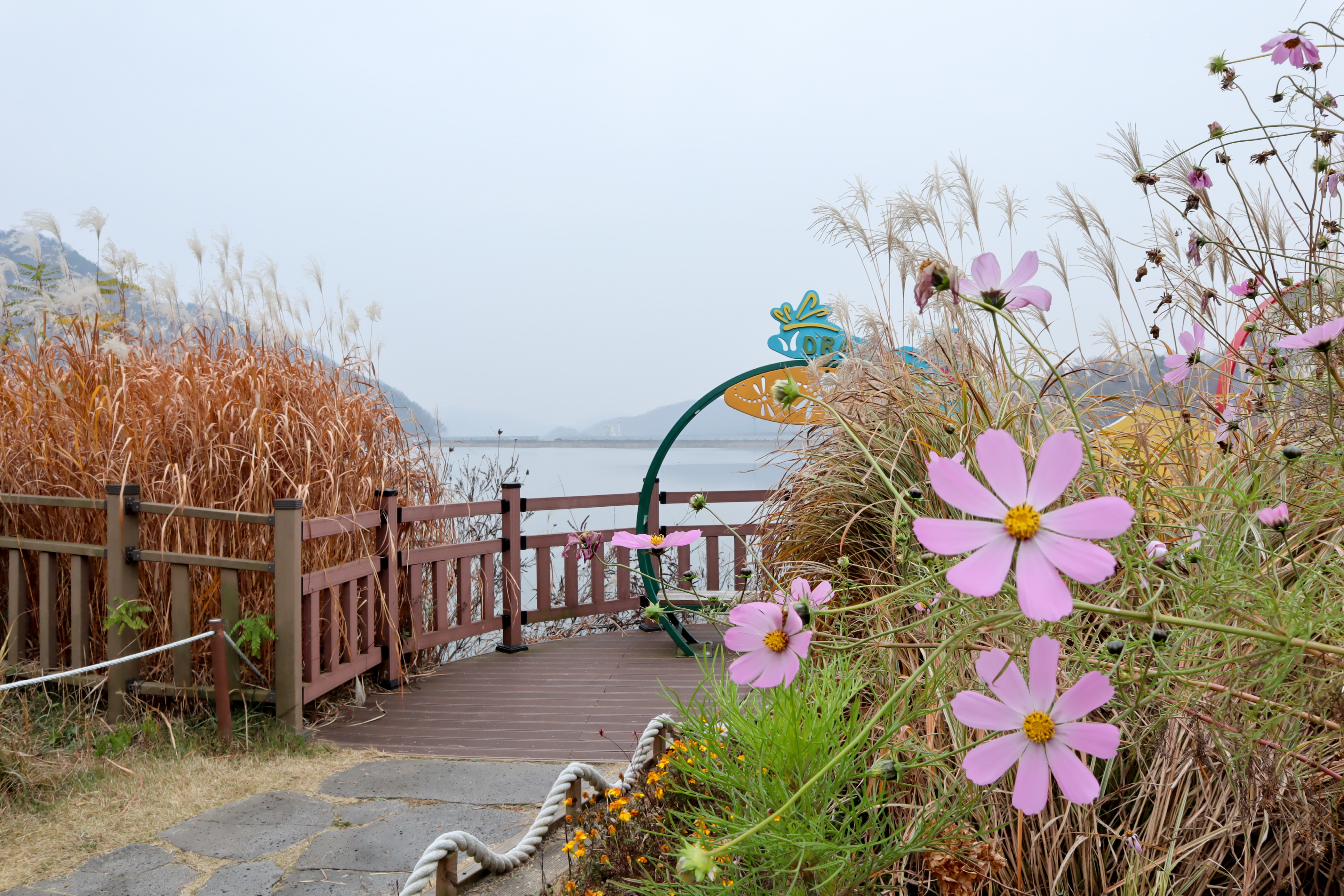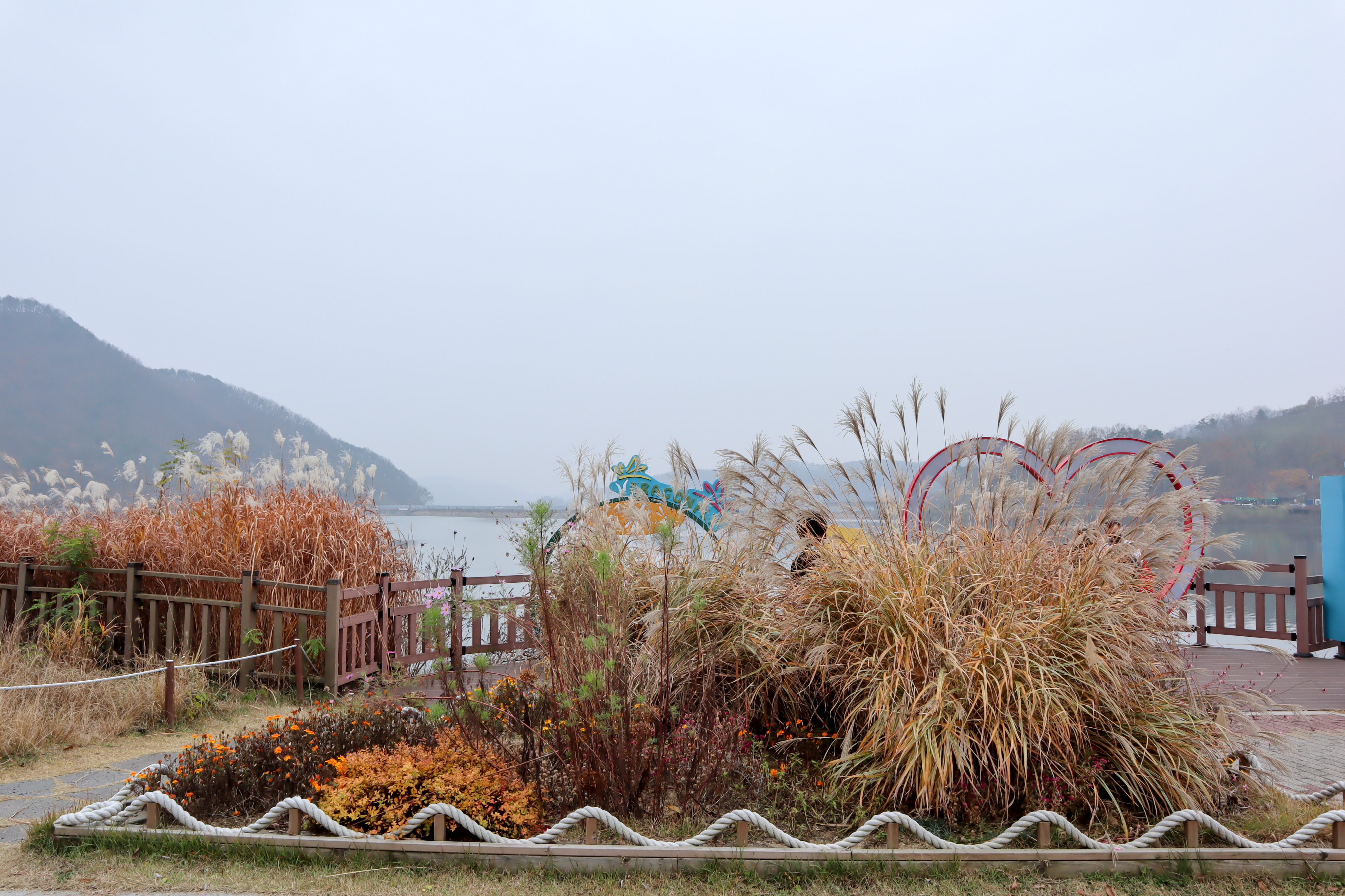 주변에 식당들도 있고 카페도 있어서 걷다가 이용을 해도 좋고 날씨가 좋은 날에는 주변 작은 산을 배경으로 사진이 멋지게 나오는 곳이기도 한데 제가 방문을 한 날은 날씨가 좋지 않아서 사진이 대부분 어둑어둑하네요.