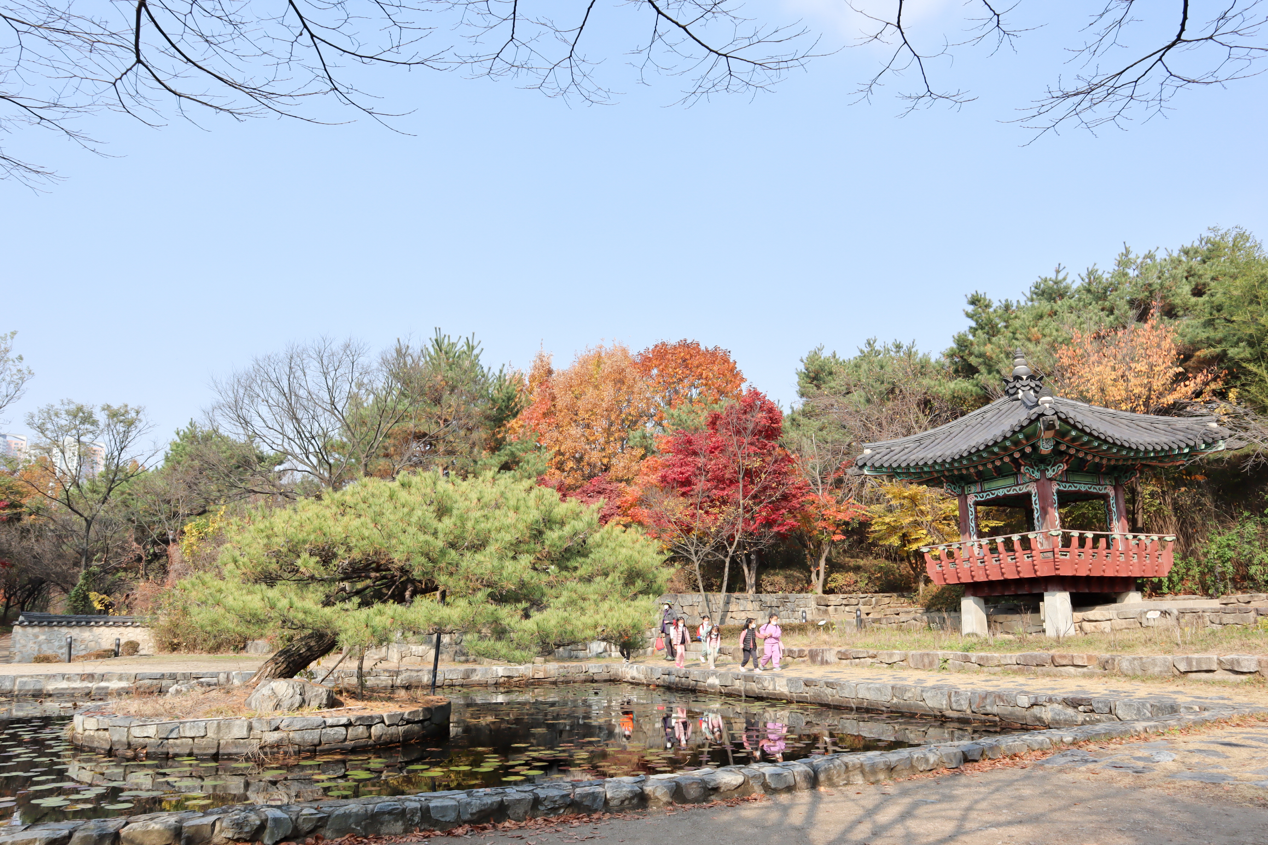 이번에 찾았을 때는 노래하는분수대 옆의 자연학습장에서 출발해서 달맞이섬을 지나 전통정원으로 돌아오는 짧은 경로를 걸어보았는데 방문 시점 기준으로는 단풍 구경을 하기 위해 간 것이지요.