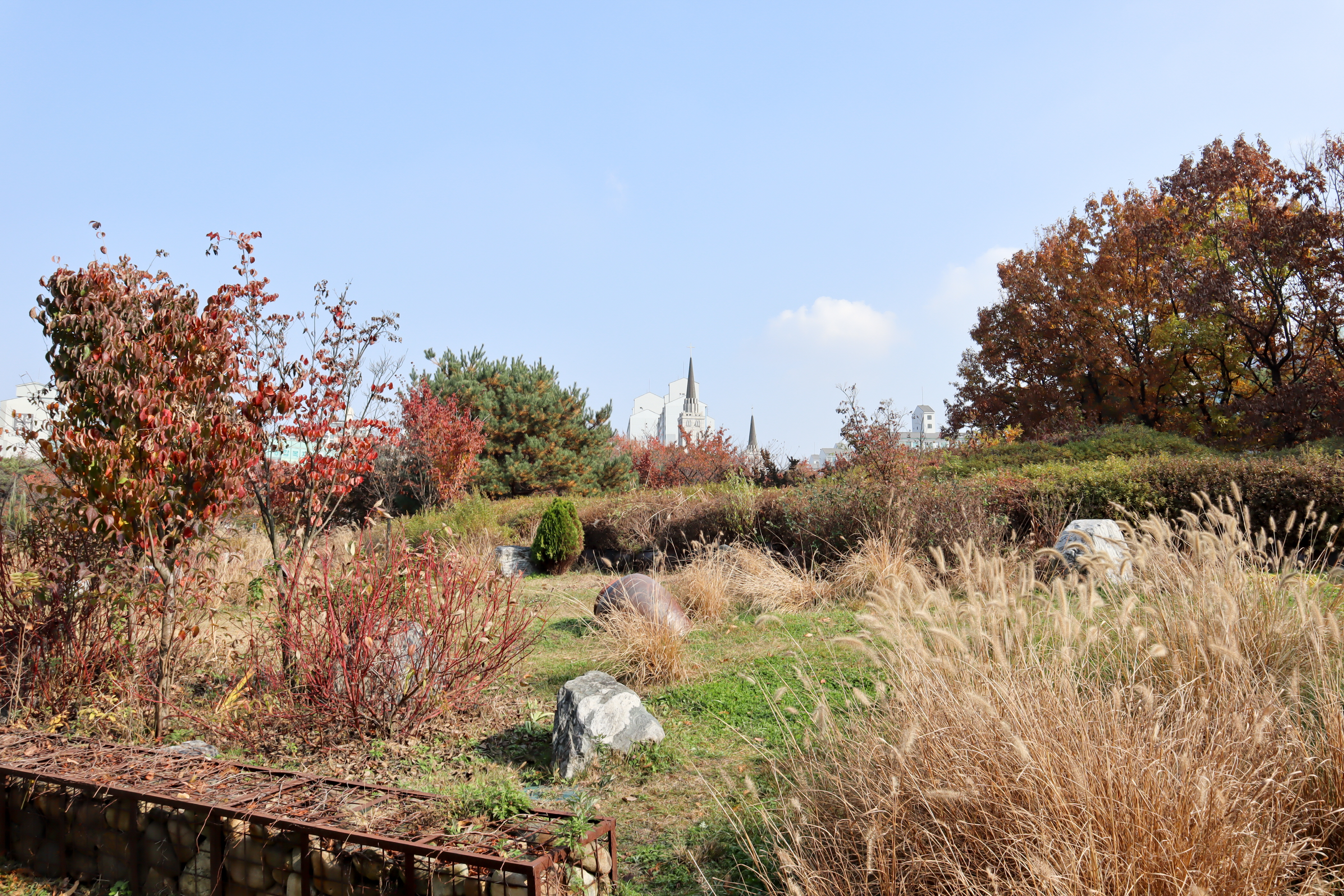 장미원은 현재 장미가 없으니 그냥 지나가는데 가는 길에도 키가 큰 나무들이 많아서 늦가을의 정취를 즐기는 데는 이상적인 곳이지요.