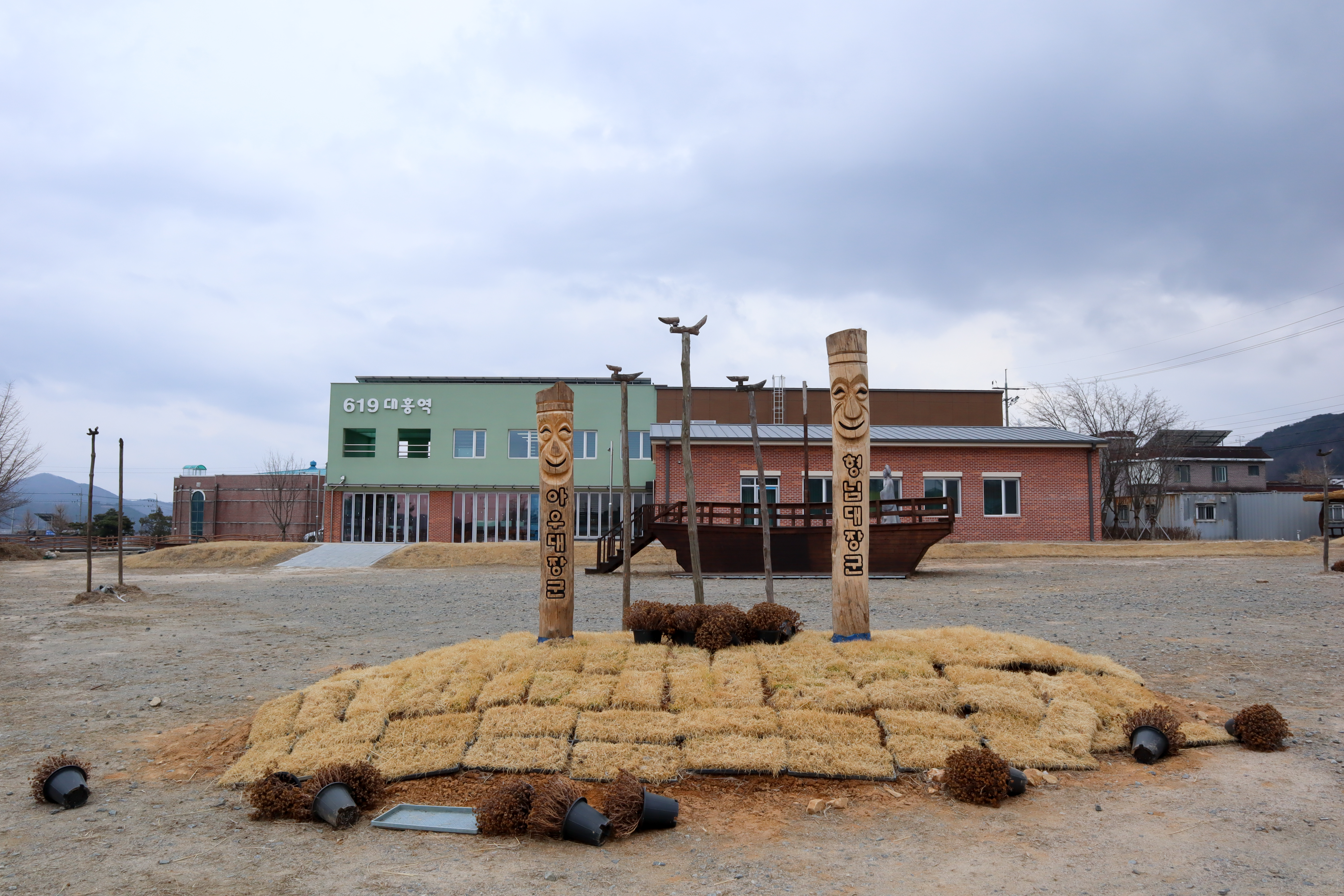 짚 같은 재료와 비슷한 것들을 사용해 만들어 놓은 조형물들도 보이는데 색상이 없어서 겨울에는 너무 삭막해 보이기는 합니다. 하지만 이 주변이 풀들이나 잔디가 자라면 보기는 좋을 것 같기는 합니다.