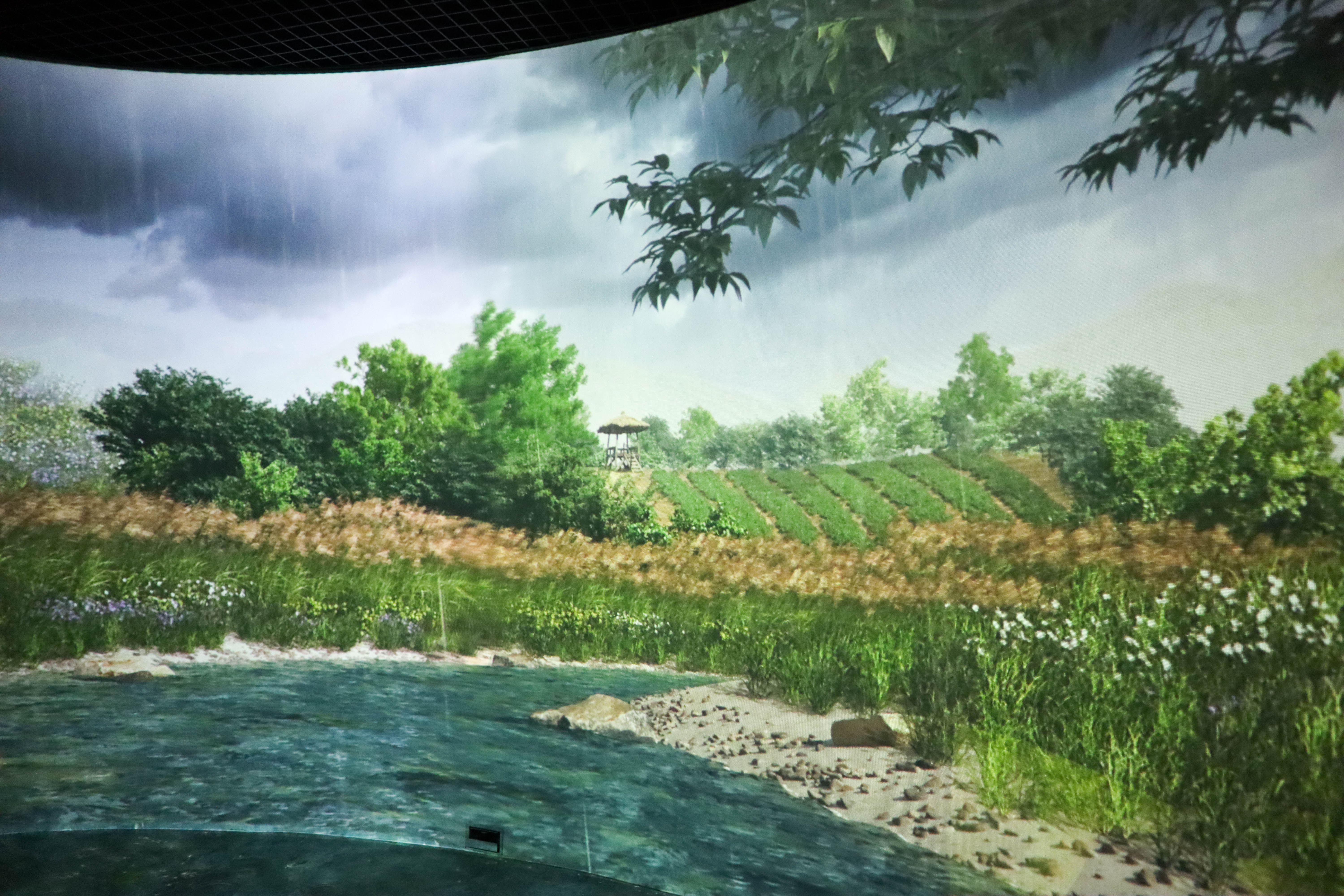 이곳에는 실감 콘텐츠 영상체험관이라는 곳도 있는데 다양한 작품들 특히 소나기와 관련된 미디어 영상을 만들어 다양한 방법으로 체험도 하고 볼 수도 있도록 만들어 놓았지요. 몇 가지 영상들을 볼 수가 있는데 방문객의 움직임에 따라 움직이는 물고기와 연못의 모습을 발아래에서 볼 수 있는 것과 은하수를 상징하는 모습, 그리고 소나기 속의 이야기를 사계절의 흐름에 따라 기억을 쫓아가는 영상 등도 볼 수가 있습니다.