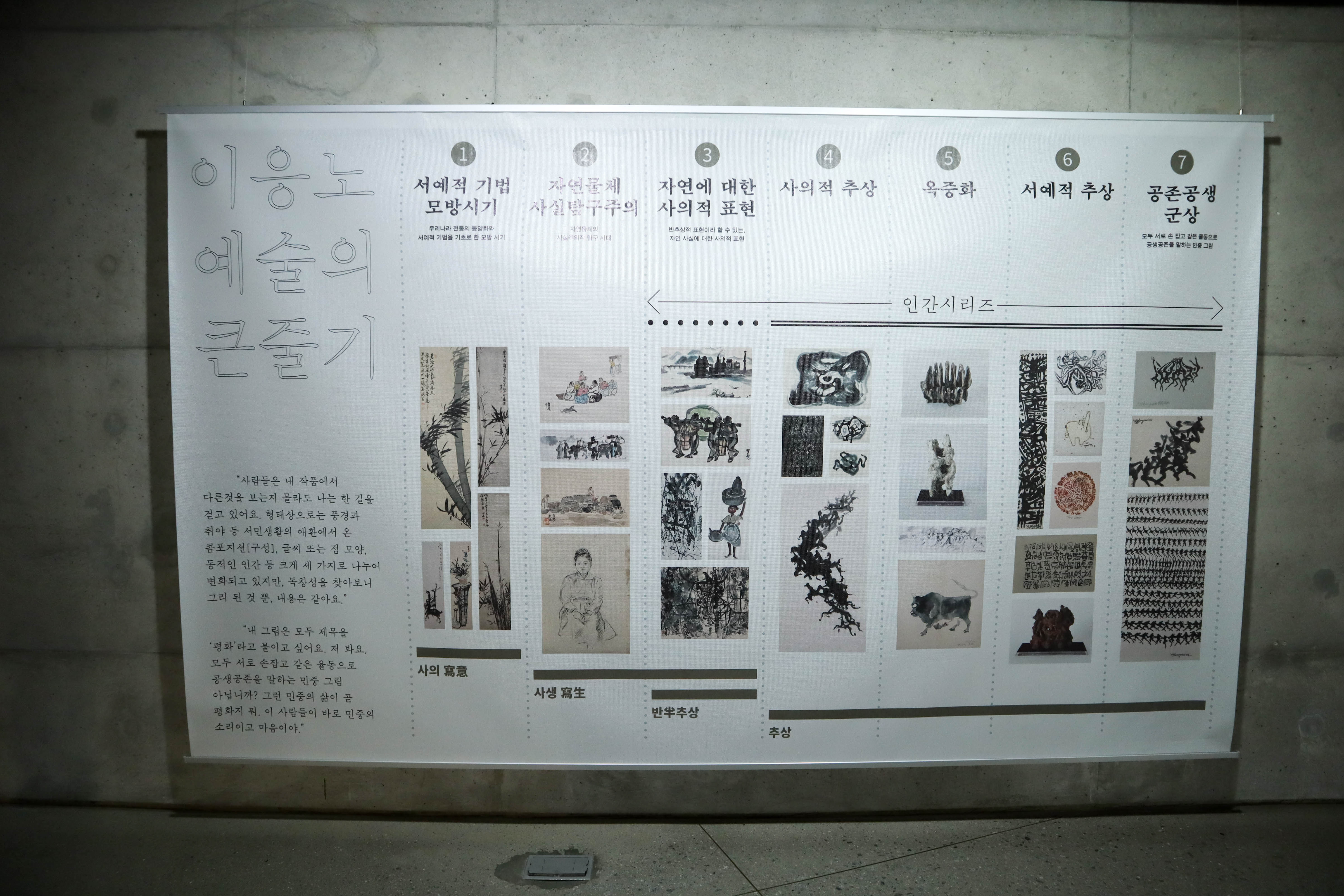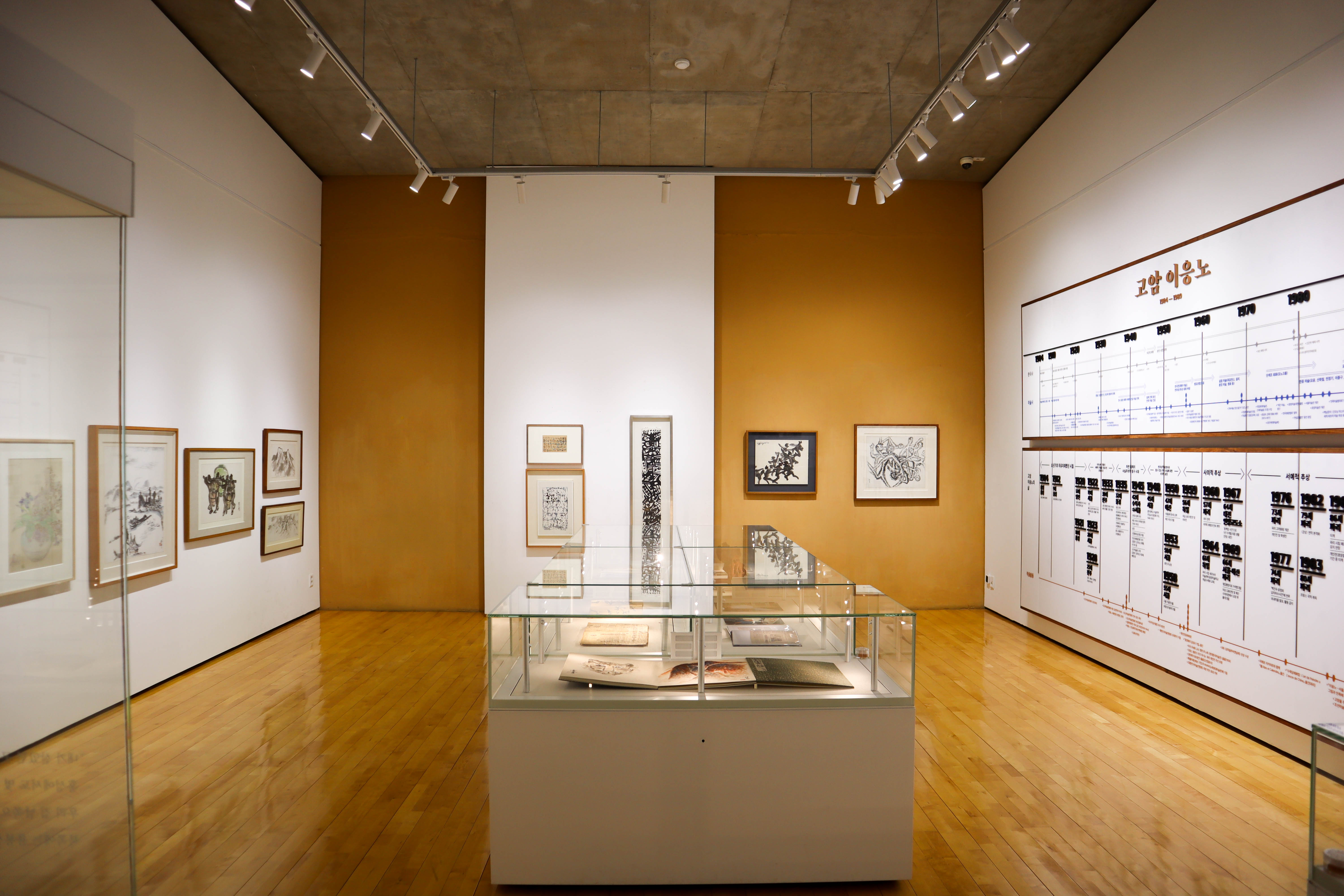 이 전시관에는 고암 이응노라는 분의 생애와 그 속에서 겪었었던 다사다난했던 일들 그리고 이분이 현대미술의 거장으로 불리기까지의 과정들이 설명이 되어 있는데 시대별로 그분이 그린 그림들과 각종 작품들이 함께 전시가 되어 있어서 변해가는 모습도 볼 수 있고 그분의 예술세계를 조금만이라도 엿볼 수 있는 기회가 될 수 있습니다.