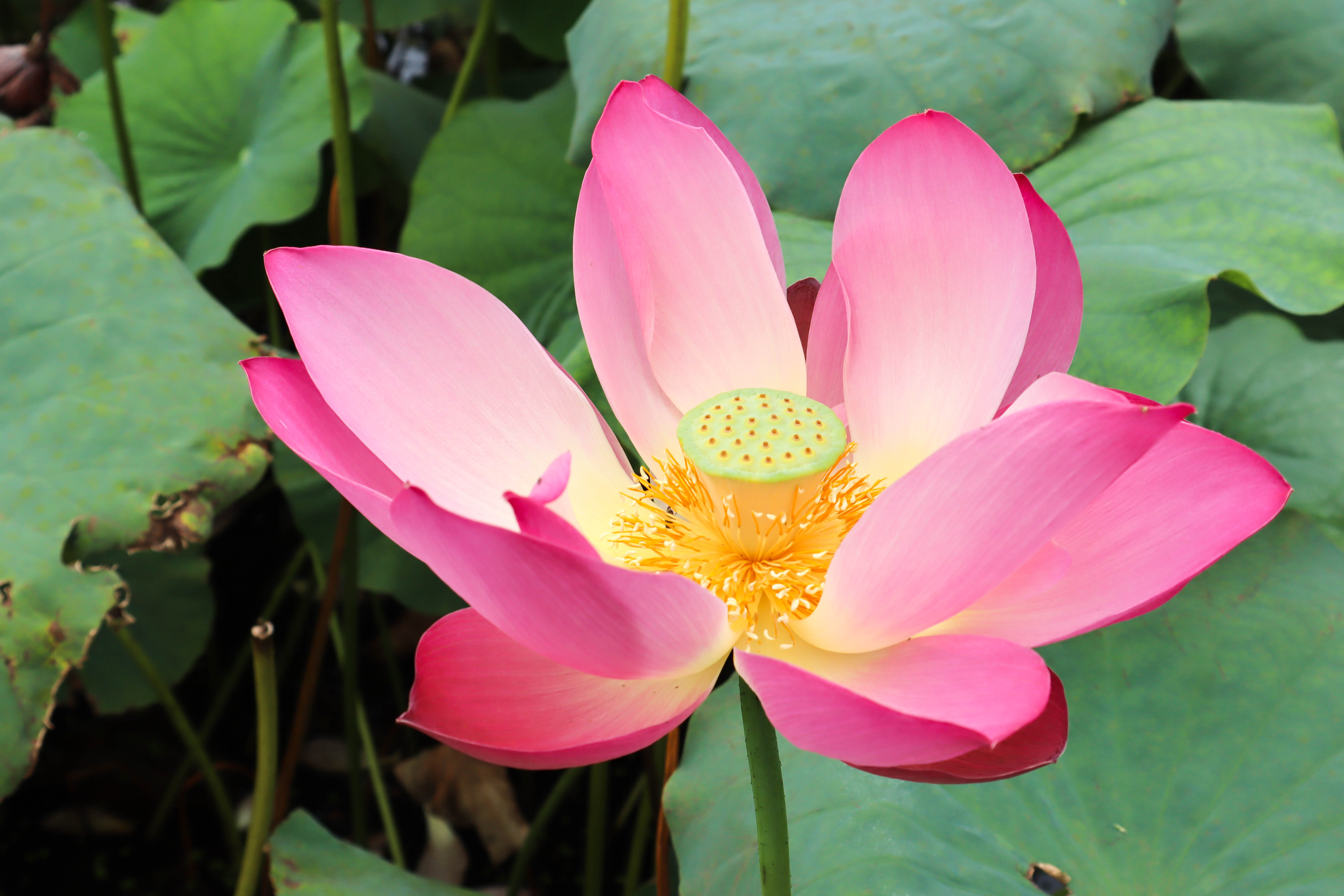바로 앞에 연지가 있는데 시기를 놓쳐서 많이 보지는 못했지만 적련과 백련 등 아름다운 연꽃도 구경을 했지요. 이른 아침에 이곳을 찾았는데 주변을 관리하는 분들이 분주하게 잔디나 풀들을 깎고 어떻게 조경을 하지 고민하는 모습을 보게 되어 무척 인상적이었습니다.