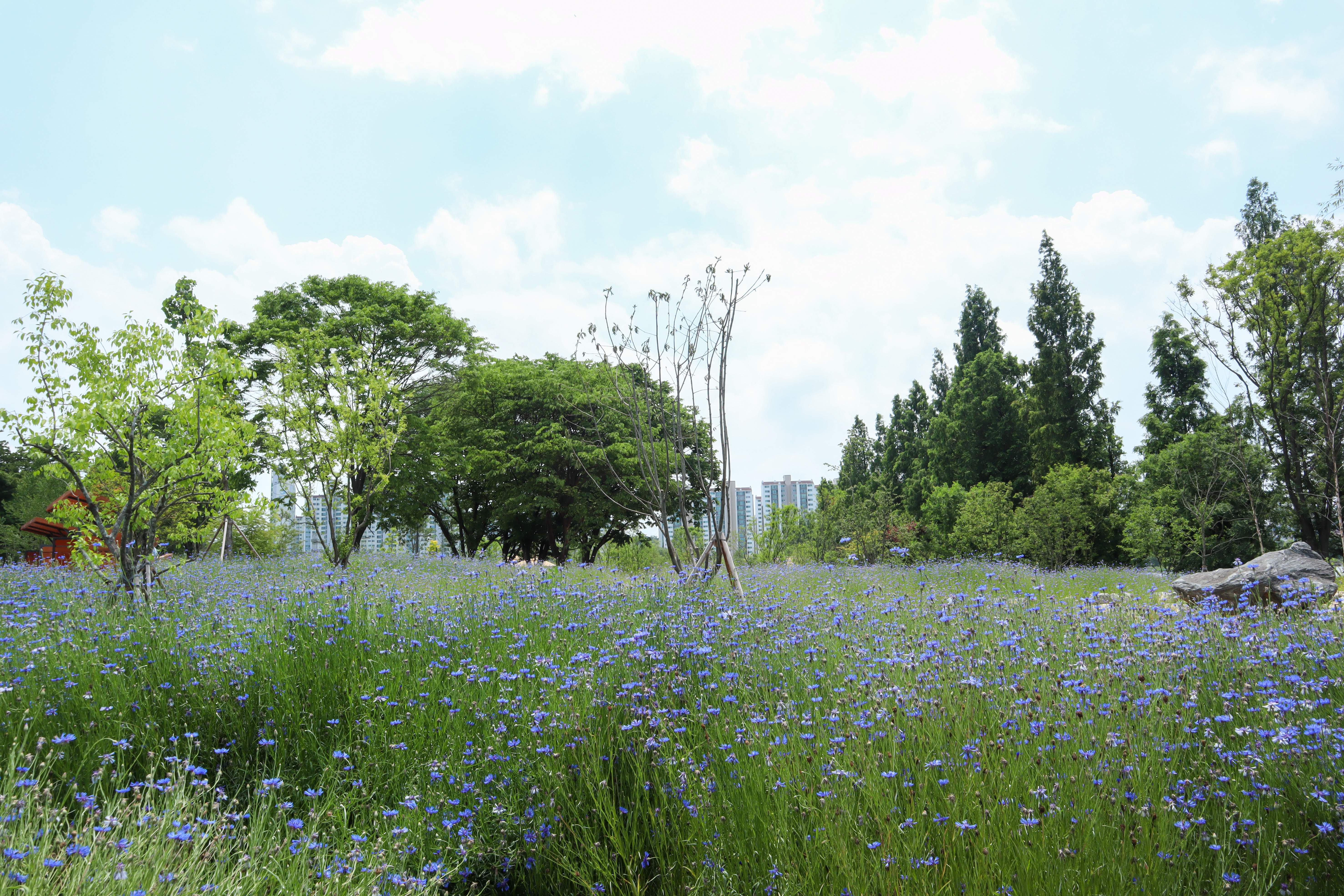 한쪽에는 수레국화들이 심어진 곳도 있는데 시기에 따라서 수레국화의 모습을 보는 재미도 있습니다. 지금은 상태가 그리 좋은 것은 아니지만 분위기는 느껴지더라구요.