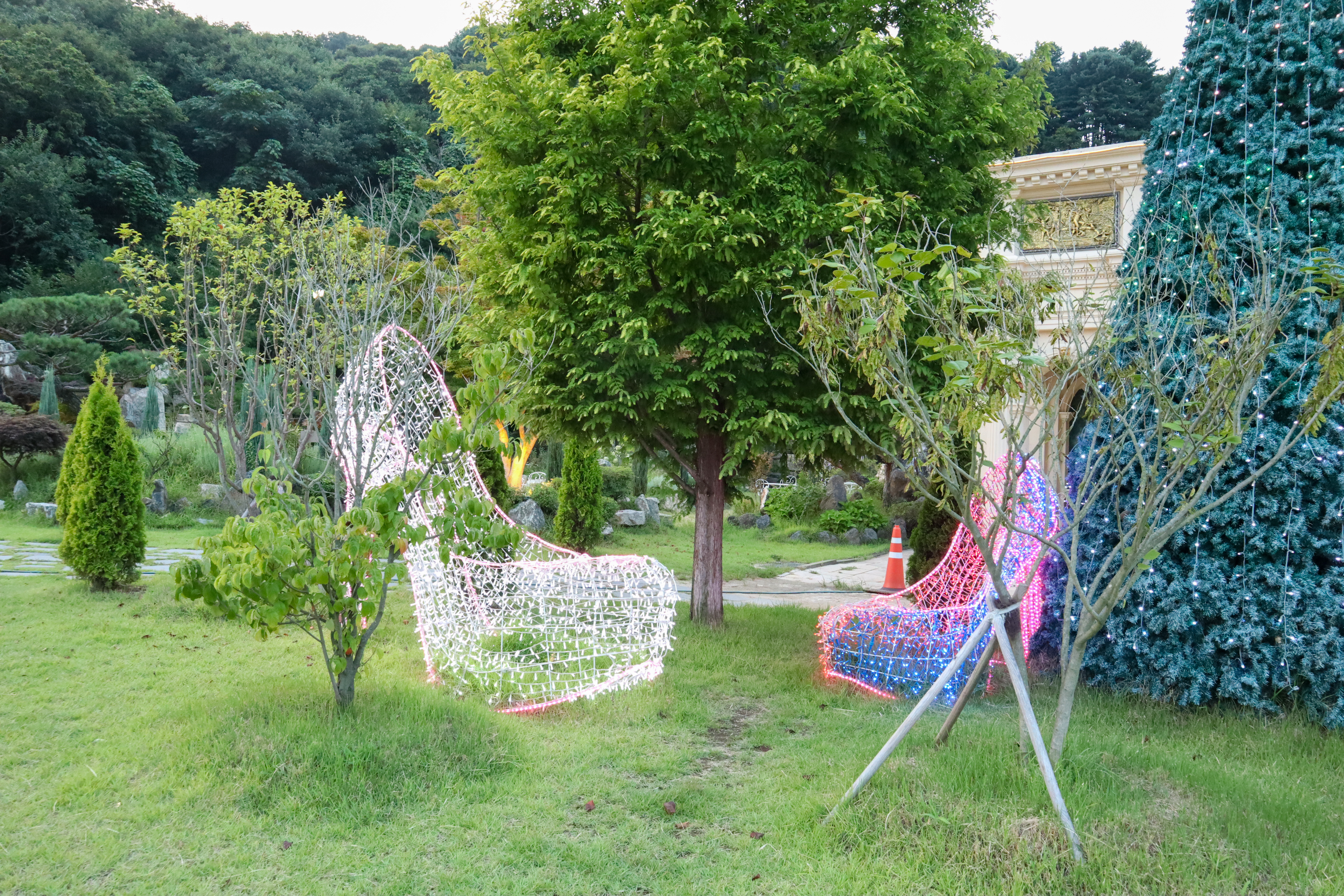 나무에 조명을 설치해 두었는데