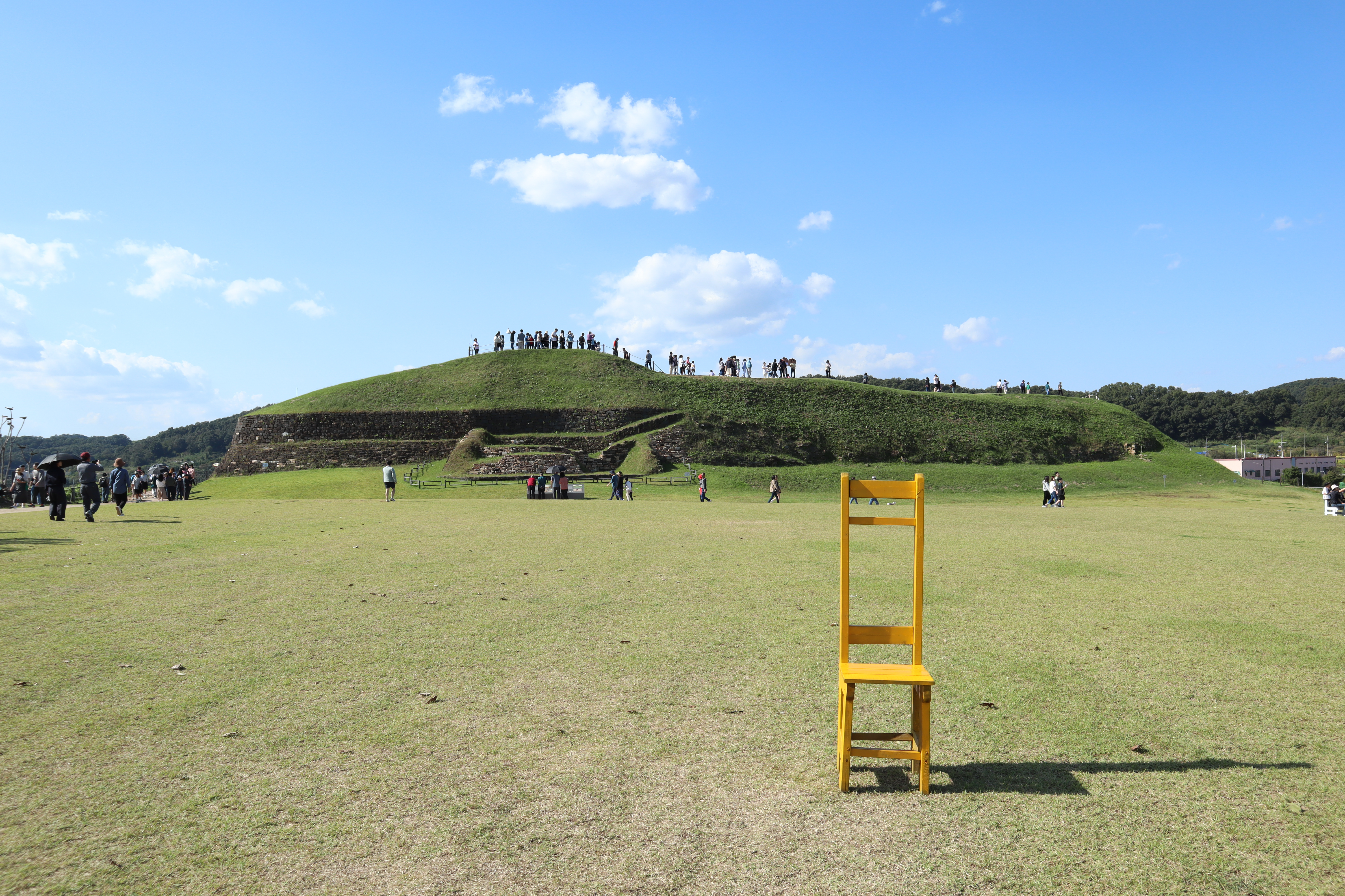 잔디광장에 나룻배나 의자 같은