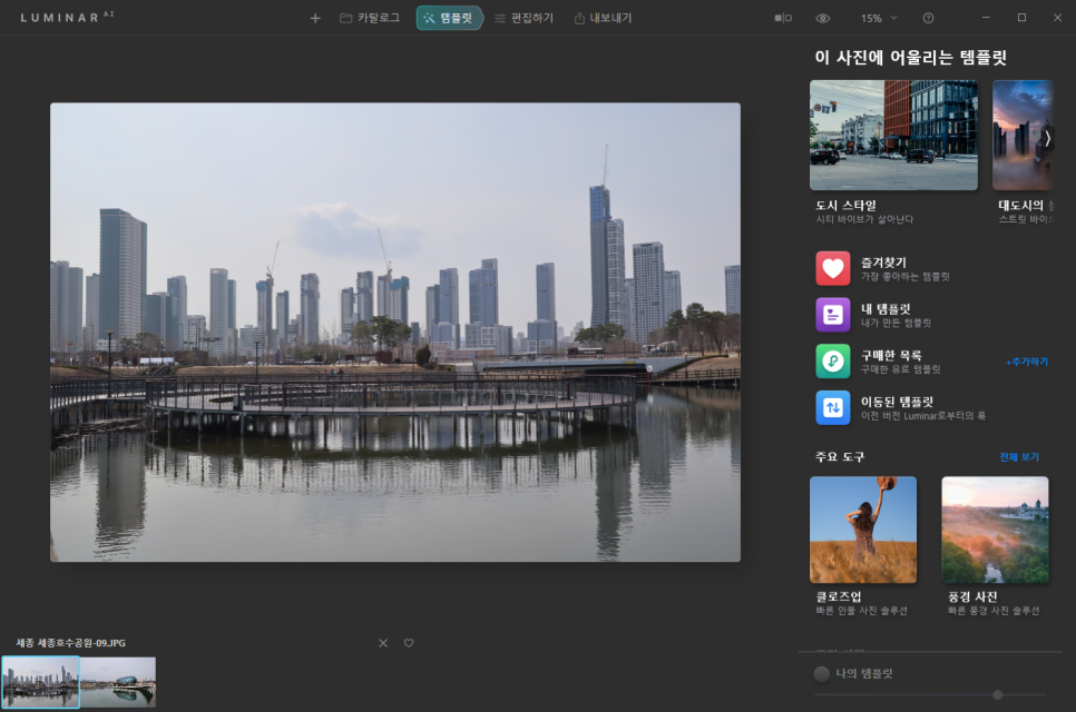 자 그럼 Luminar4와 Luminar AI의 화면을 잠시 비교를 해도록 하겠습니다.