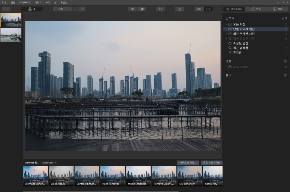 동일한 사진 2장을 추가하고 본 화면인데 달라보이는 부분이 있으신가요? 전체적인 인터페이스는 큰 범위내에서는 변화를 주지는 않은 듯 합니다. 따라서 Luminar4를 사용하던 분이면 Luminar AI는 금방 익숙해 질것 같아요.