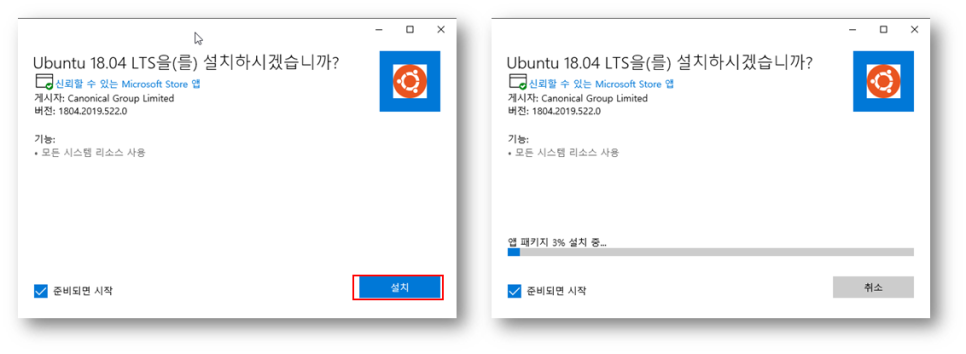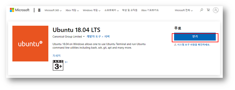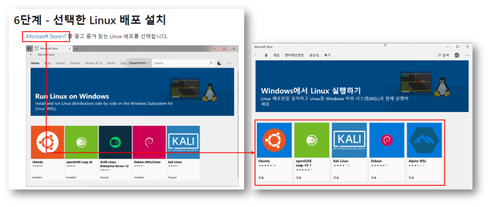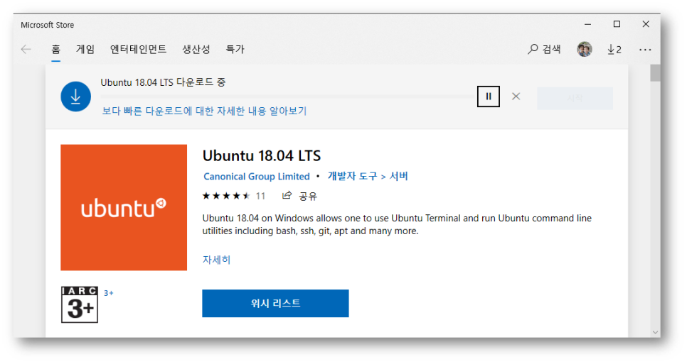 이제 앞으로 사용할 Linux 서브시스템으로 사용할 Linux 배포판을 다운로드 받아서 설치합니다.