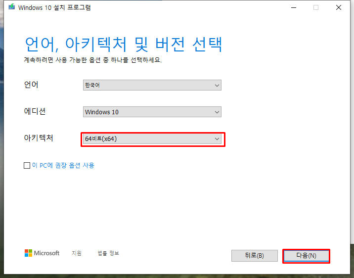 이 경우 Windows10을 최신 버전으로 업그레이드를 하고 다시 하시면 됩니다.
