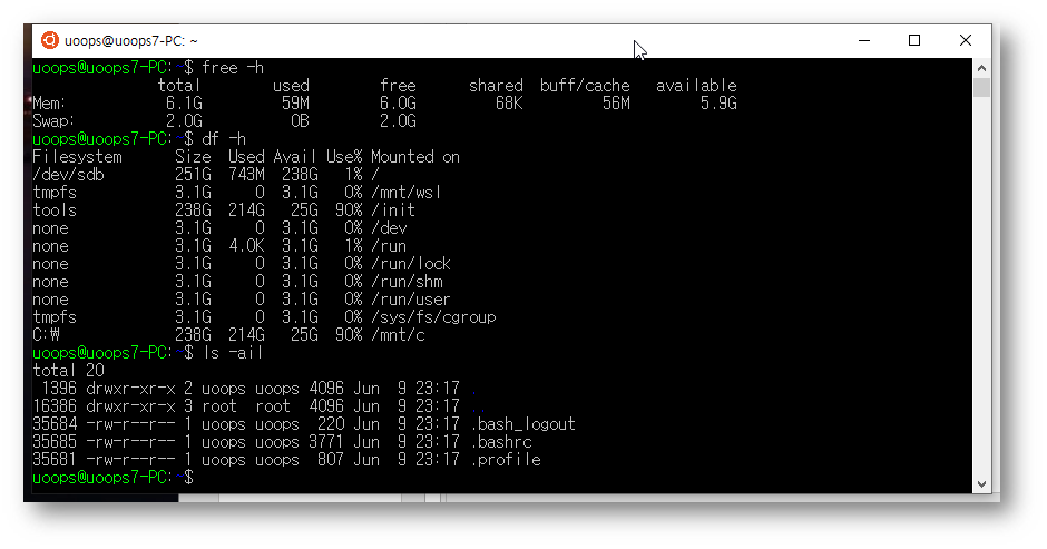 테스트로 몇 가지 명령을 입력해 보았습니다. 일반적인 Linux를 사용하는 방법과 동일하지요.
